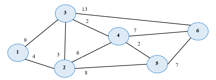 1 no’lu dağıtım merkezine karşılık gelen 1 no’lu düğüm, keyfi başlangıç noktası olarak seçilmiştir. 1 no’lu düğüme bağlanabilecek komşu düğümler 2 ve 3 no’lu düğümlerdir. Bu düğümler arasından 1 no’lu düğüme en kısa mesafe 4’tür. Bu nedenle 2 no’lu düğüm, 1 no’lu düğüme bağlanır.
