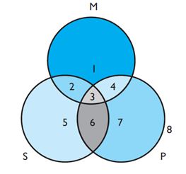 Yukarıdaki Venn diagramındaki “6” bölgesi, hangi önermeyi temsil etmektedir?