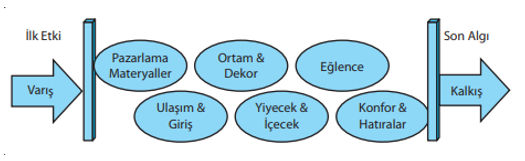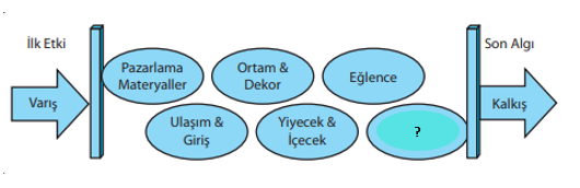 Etkinlik, dayanıksız (üretildiği anda tüketilen) bir olaydır. Diğer taraftan katılımcının etkinlik sonlandığında sahip olduğu ve ona kalan tek şey etkinlikte geçirdiği sürede yaşadığı deneyimdir. Bu doğrultuda, şekilde görüldüğü gibi içinde pek çok farklı unsuru barındıran bu çok boyutlu deneyim beraberinde etkinliği düzenleyen, ona sponsor olan tüm örgütler için imaj ve itibarı tümden etkileyebilecek önemli bir temas noktasıdır. Şekilde varıştan kalkışa ve son algıya doğru belirli bir kronojik sıra izlendiğinde, akılda kalıcı etkiye sahip 6. boyutun Konfor & Hatıralar olduğunu görebiliriz. Doğru yanıt B’dir.