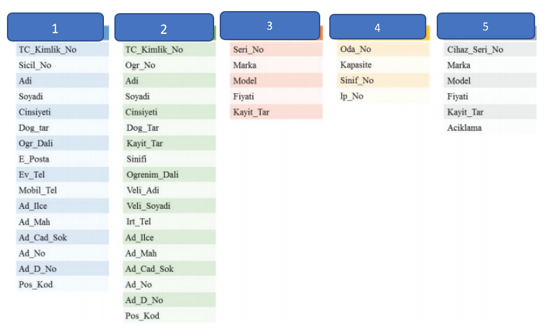 Yanda verilen varlıkların ve özniteliklerinin oluşturulması şemasında "tablet bilgisayarlar" hangi sayı ile gösterilmiştir?