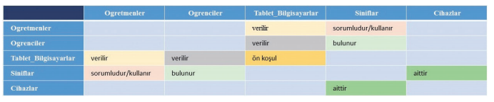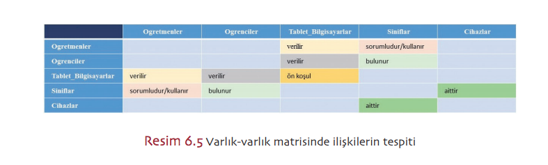 Varlık-varlık matrisinde ilişkilerin tespiti |