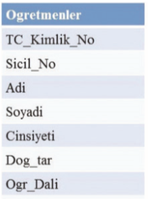 Yukarıdaki tablodaki bilgilere göre aşağıdakilerden hangisi birincil anahtar olabilir?