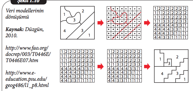 Raster veri modeli yeryüzünü, piksellere bağlı olarak temsil eder. |