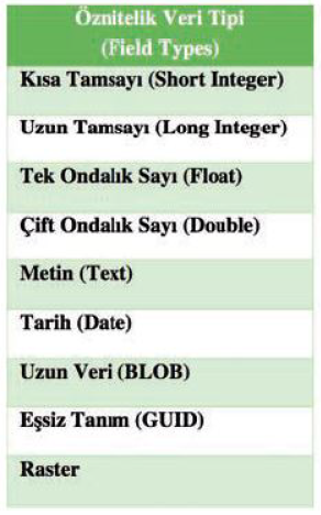 Raster veri modelinde veri tipleri,