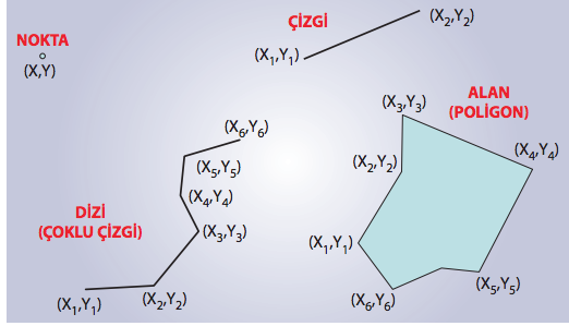 Aşağıdakilerden hangisi çizgiler tarafından sınırlandırılmış x, y koordinatlarından oluşan iki boyutlu alansal geometrik nesnedir?