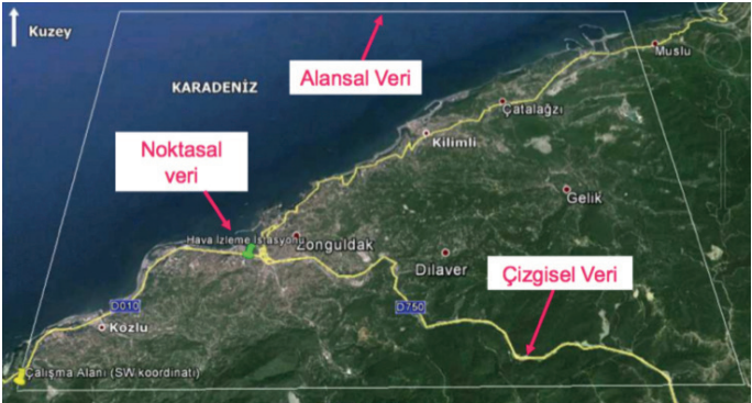 Çizgi gösterim şekli karayolu, demiryolu, akarsu, sınır gibi nesnelerin modellenmesinde kullanılır.