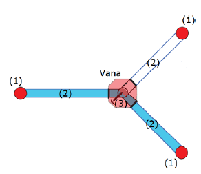 Yukarıdaki şekilde gösterilen ve bir yönden gelen suyun yönünü değiştiren vana sisteminde bu akışın elemanları (1), (2) ve (3) olarak numaralandırılmıştır. Aşağıdaki şıkların hangisinde bu numaralandırmaların isimleri doğru verilmiştir?