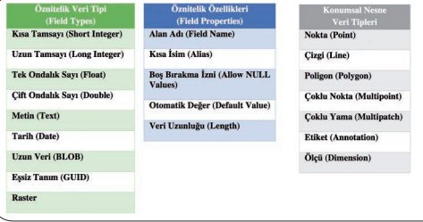 tabloları belirlenerek konumsal nesne veri kümesi içine