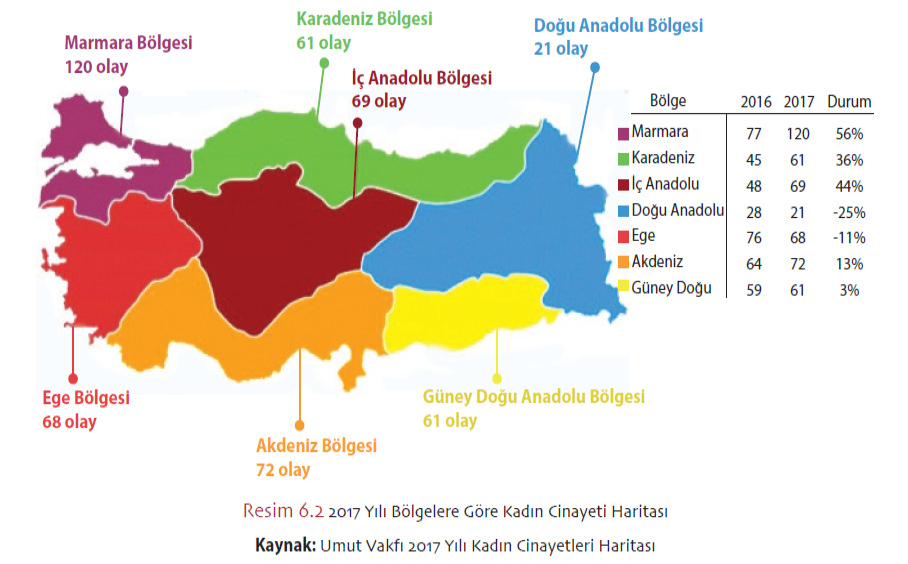 Resim 6.2 2017 Yılı Bölgelere Göre Kadın Cinayeti Haritası