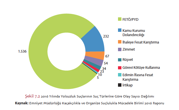 Emniyet Müdürlüğü Kaçaçılık ve Organize Suçlulukla Mücadele Birimi 2016 raporuna göre suç türlerine göre olay sayısı dağılımında 2. sırada hangi suç gelmektedir?