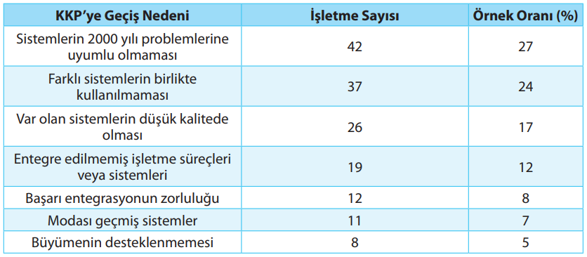 İşletmelerin kurumsal kaynak planlamasına geçiş kararlarında etkili olan teknolojik nedenler: