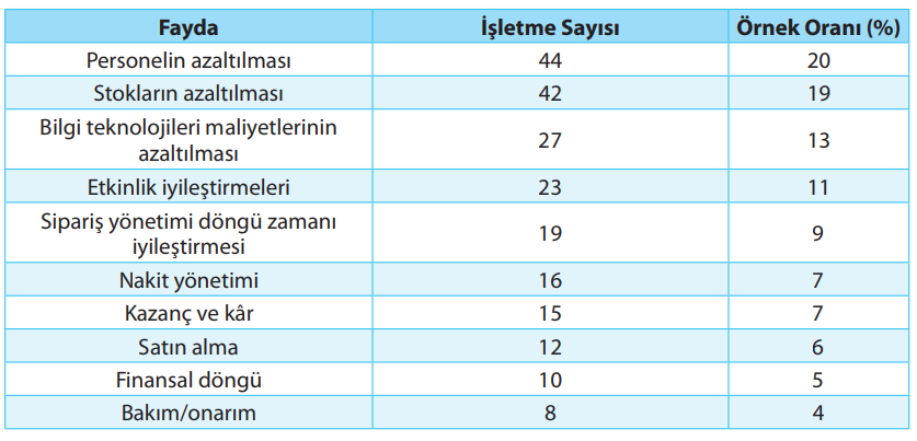 Stok maliyetlerinin azaltılması, küçük işletmelerin kurumsal kaynak planlaması kullanımının işletme nedenlerindendir.