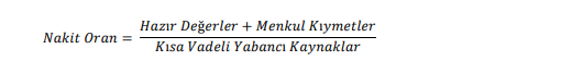 Nakit oranı hesaplaması aşağıdakilerden hangisinde doğru verilmiştir?