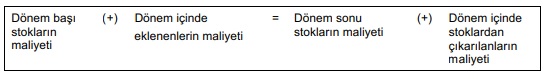 gelir tablolarında, satılan malın (mamulün) maliyetinin hesaplanması, stok hesaplarından yararlanılarak düzenlenen, aşağıdaki eşitliğe dayanır: