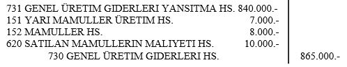 731 GENEL ÜRETİM GİDERLERİ YANSITMA HESABI alacak toplamının 840.000.-, 730 GENEL ÜRETİM GİDERLERİ HESABI borç toplamının 865.000.- olduğu görülmektedir. Bu durumda 25.000.- TL’lik bir eksik yükleme söz konusudur.