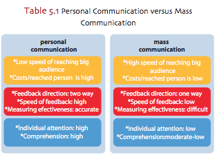 Differences between personal and mass communication is seen on the table below. The correct option is A.