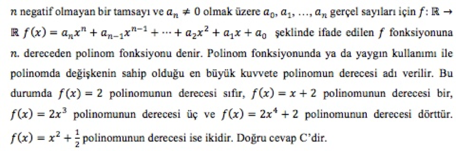 Aşağıdakilerden hangisi ikinci dereceden bir polinom fonksiyonudur?