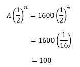 Hücre sayısı her 30 dakikada yarıya inmiş. Canlı hücre sayısına iki saat sonra bakılacağından belirtilen sürede 30 dakikalık 4 ( n=4) dönem olacaktır. Buna göre başlangıçta 1600 (A=1600) olan hücre sayısı iki saat sonra;
