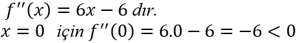 dir. Bu değerleri ikinci türevde yerine yazalım.