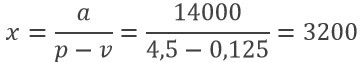 Derginin sabit üretim giderleri a=14000 TL, birim değişken gideri v=0,125 TL ve derginin satış fiyatı p=4,5 TL olduğuna göre başa-baş satış miktarı