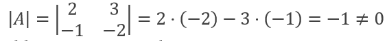 Bir matrisin tersinin olabilmesi için o matrisin determinantının sıfırdan farklı olması gerekir. Önce A matrisinin determinantını hesaplayalım.