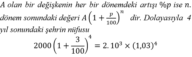 artmaktadır. Aşağıdakilerden hangisi şehrin 4 yıl sonraki nüfusunu verir?