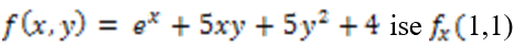 f(x,y)=y2-2x2+5xy ise fy(1,1) aşağıdakilerden hangisidir?