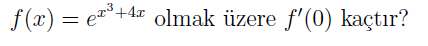 Bunun için önce f fonksiyonunun türevini alıp 4’e eşitlemeliyiz. f'(x)=4x3=4 denkleminden x=1 olur.
