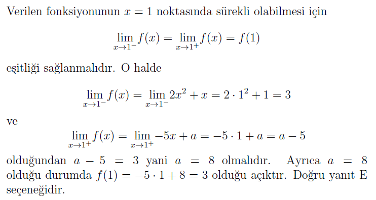 olarak elde edilir. Dolayısıyla doğru cevap E seçeneğidir.