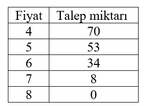 Tabloda verilen değerlere göre