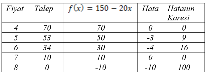 denkleminde hataların kareleri toplamı kaçtır?