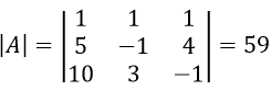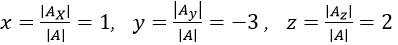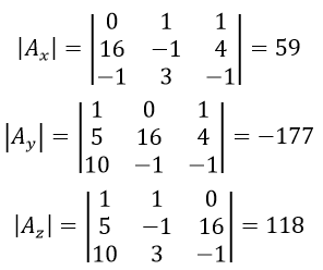 olduğundan denklem sistemini Cramer yöntemi ile çözebiliriz. x, y ve z bilinmeyenlerine karşılık gelen matrisleri sırasıyla