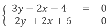 3y-2x-4=0 ve -2y+2x+6=0 doğrularının oluşturduğu denklem sistemi