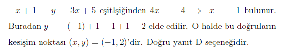 y=4x+3 doğrusunun x eksenini kestiği nokta aşağıdakilerden hangisidir?