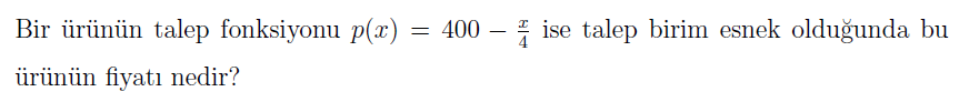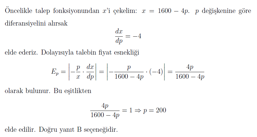 Bir malın sabit üretim gideri 3000 lira, birim değişken gideri 2 liradır. Başa baş noktasının 375 olması için malın satış fiyatı aşağıdakilerden hangisi olmalıdır?