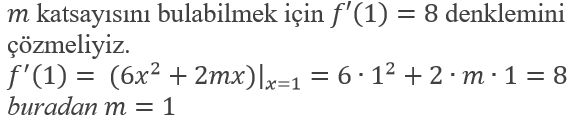 noktasındaki teğet doğrusunun eğimi 8 ise m katsayısı aşağıdakilerden hangisidir?