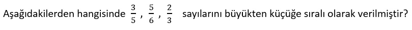 Verilen rasyonel sayıların paydaları eşitlenirse payı büyük olan sayı büyük olacağından sıralama aşağıdaki gibi olacaktır.