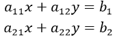 A.X=B olur. Her doğrusal denklem sistemi, A katsayılar matrisi, X değişkenlerin sütun matrisi ve B eşitliğin ikinci yanındaki sayıların sütun matrisi olmak üzere A·X = B biçiminde yazılabilir. Bu durumda verilen denklem sistemi