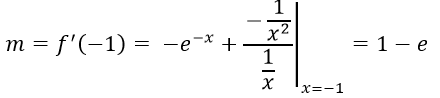f(x)=e-x+ln (1/x) fonksiyonunun x=-1 noktasındaki teğetinin eğimi kaçtır?