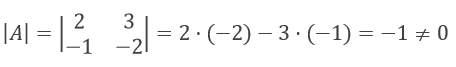 Bir matrisin tersinin olabilmesi için o matrisin determinantının sıfırdan farklı olması gerekir. Önce A matrisinin determinantını hesaplayalım.