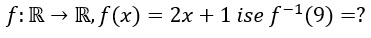 9 sayısı ters fonksiyonda yerine yazılarak cevap bulunur.