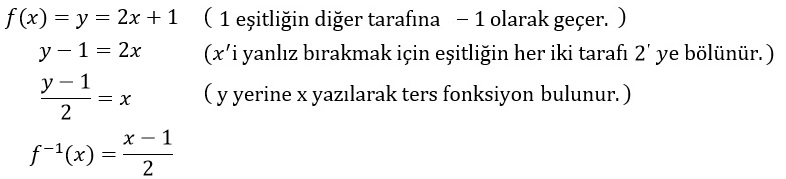 Öncelikle aşağıdaki şekilde ters fonksiyon bulunur.