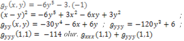 x sabit düşünülüp y’ye göre art arda 3 kez türev alınırsa