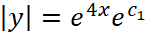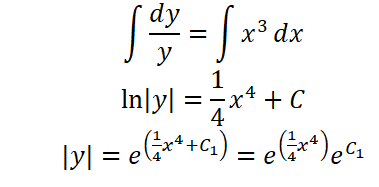 Denklemi dy/y=4dx olarak yazalım ve her iki tarafın integralini alalım. Böylece ln|y|=4x+c1 elde ederiz. Buradan