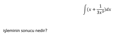 Alttan y=x2 parabolü, üstten y=x doğrusu ile sınırlı bölgenin alanı kaç br²’dir?