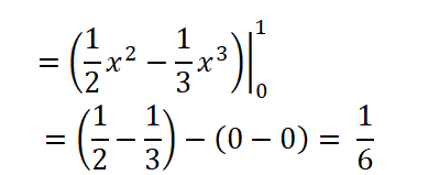 Alanı hesaplamak için önce bölgenin sınırlarını belirlemek gereklidir. y=x2 parabolü ile y=x doğrusunun kesiştiği noktalar x=0 ve x=1’dir. Bölge y=x2 parabolü ile alttan ve y=x doğrusu ile üstten sınırlı olduğu için alanı veren integral,