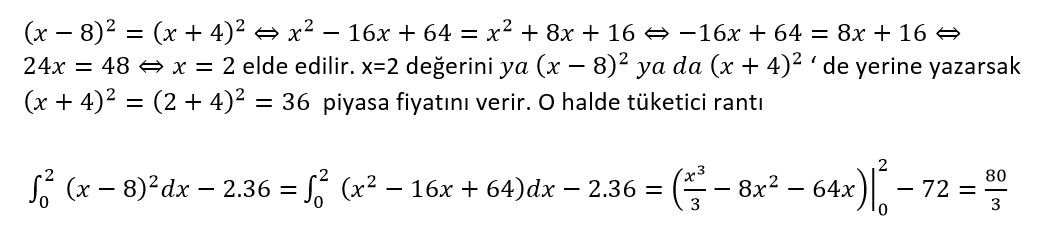 Talep fonksiyonunun türevi negatif olduğundan