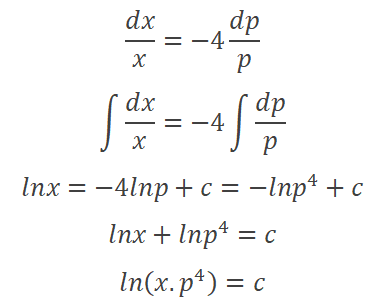 Bir malın talep fiyat esnekliği 4 olarak verildiğine göre bu malın miktarı ve fiyatı arasındaki ilişkiyi veren talep denklemi aşağıdakilerden hangisidir?