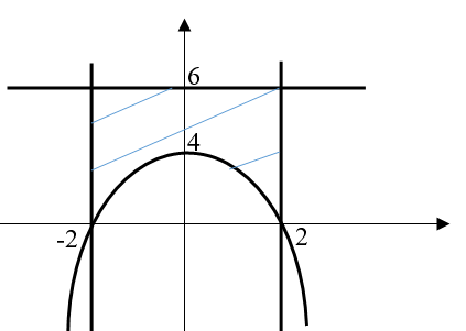 üstten y=6 ve yanlardan x=2 ve x=-2 ile sınırlı bölgenin alanı kaç br2 ' dir?