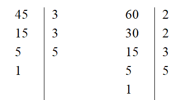 olup 45=32.5 ve 60=22.3.5 şeklinde bulunur. Böylece ekok(45,60)=22.32.5=180 olur.
